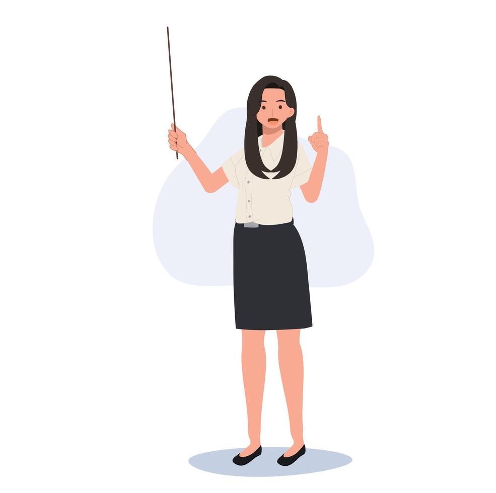 Thai University Student in Uniform Giving Lecture with Pointer. cartoon Pro Vector