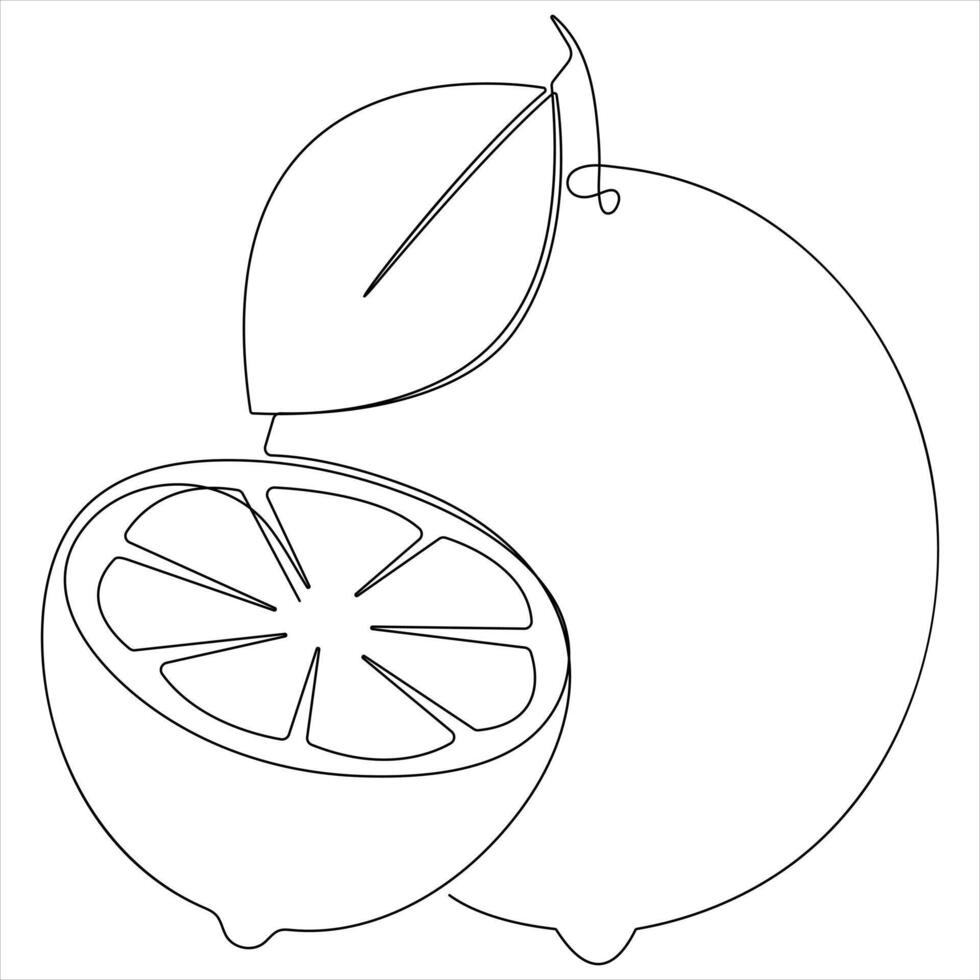 One continuous line drawing of lemon with Leaf isolated illustration Pro Vector