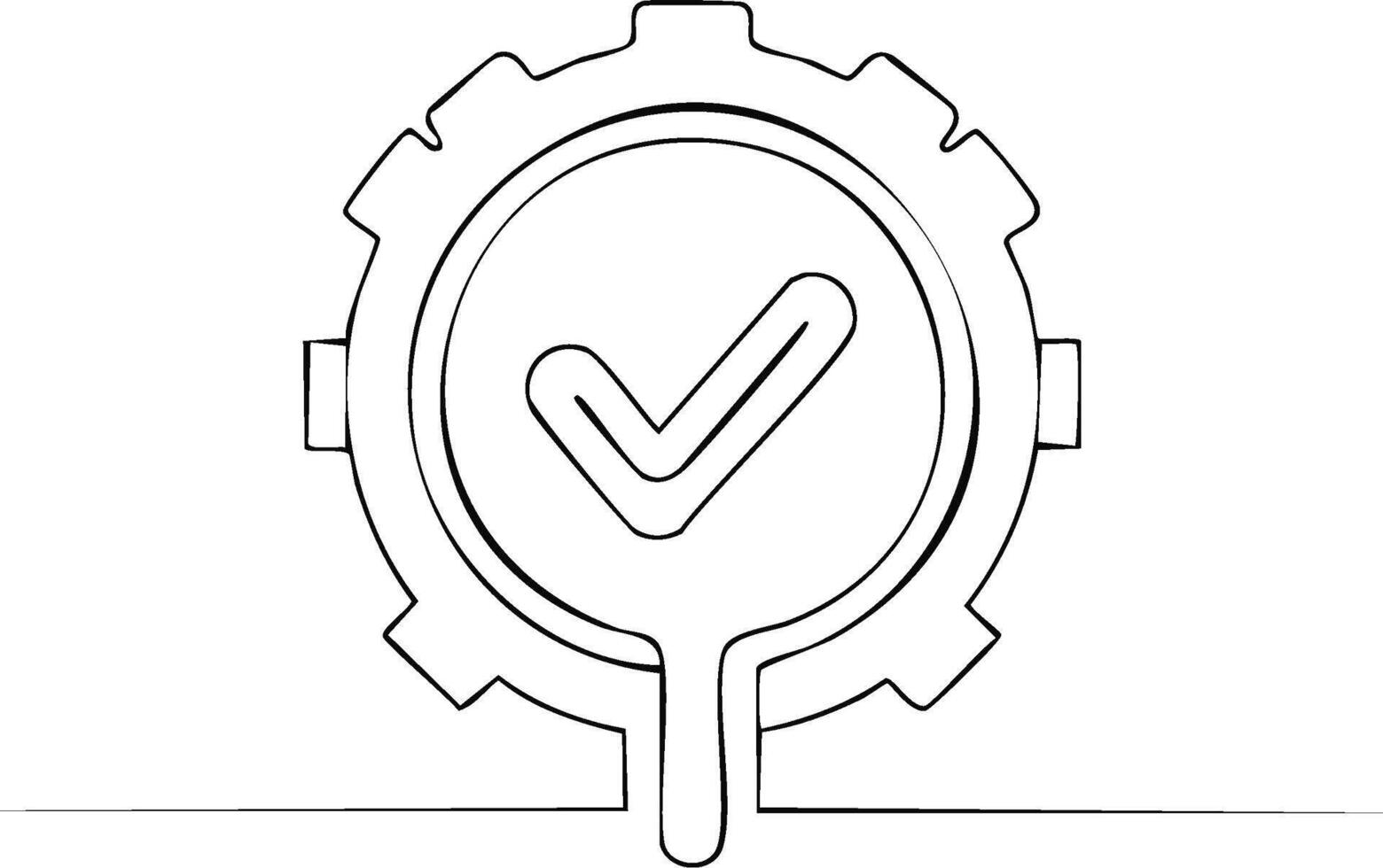 Gear with Check Mark Icon Continuous Line Drawing Settings Approval and Confirmation Symbol Pro Vector