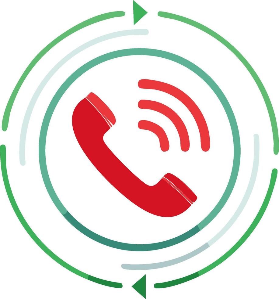 Red phone receiver with green circle and waves indicating call connection Pro Vector