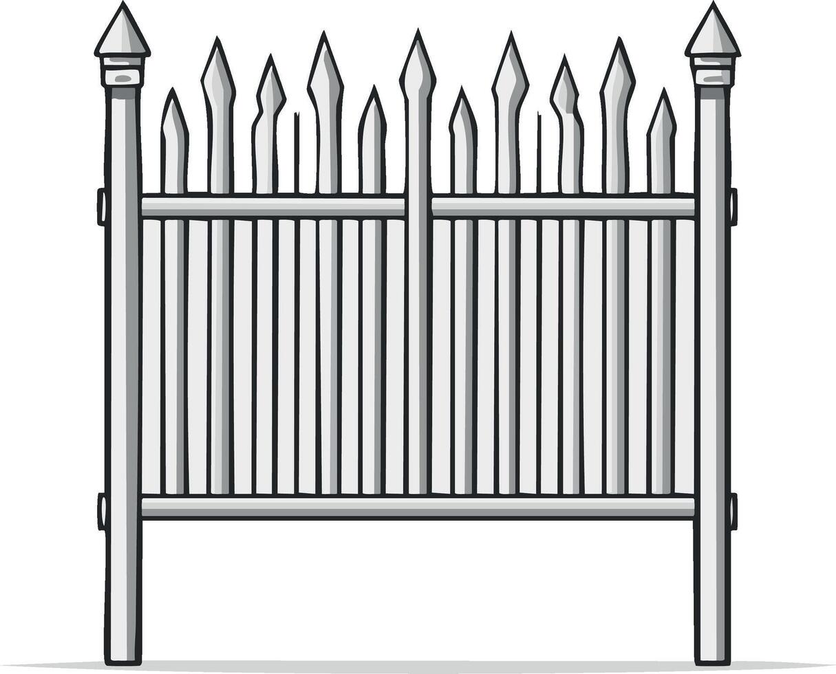 White Picket Fence Illustration With Pointed Top Rails And Posts, Front View Style Pro Vector