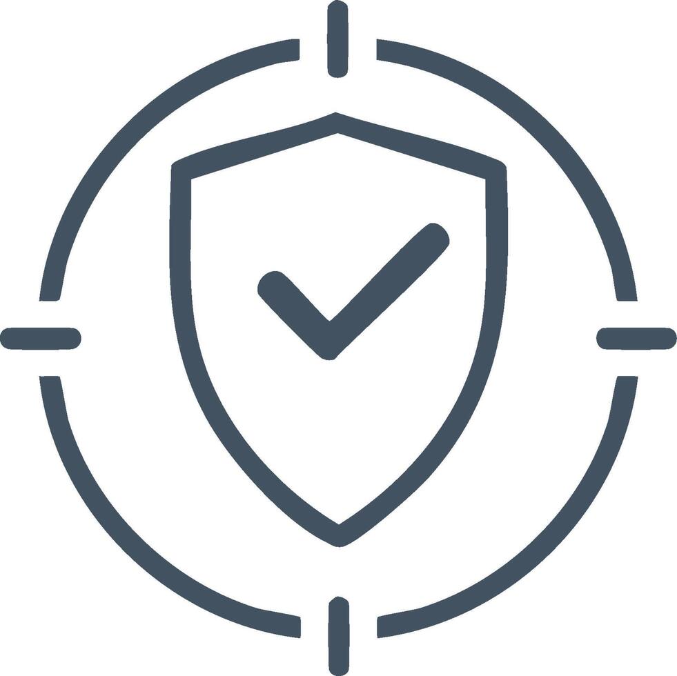 Shield with Check Mark in Target Icon - Protection, Security, Verified, Cybersecurity, Guard, Approval, Confirmation Line Art Concept Pro Vector