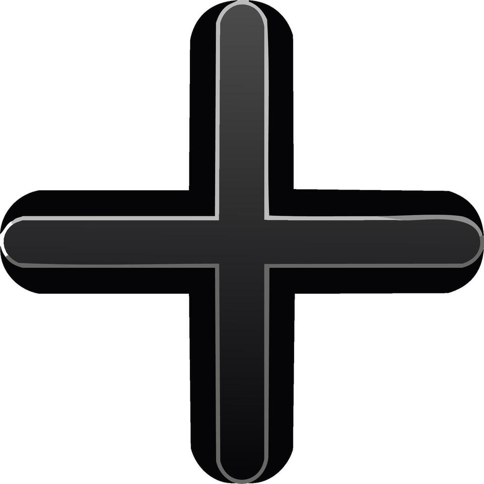 Dark metallic plus sign on white background, 3D rendering, addition sign, cross symbol, creative element Pro Vector