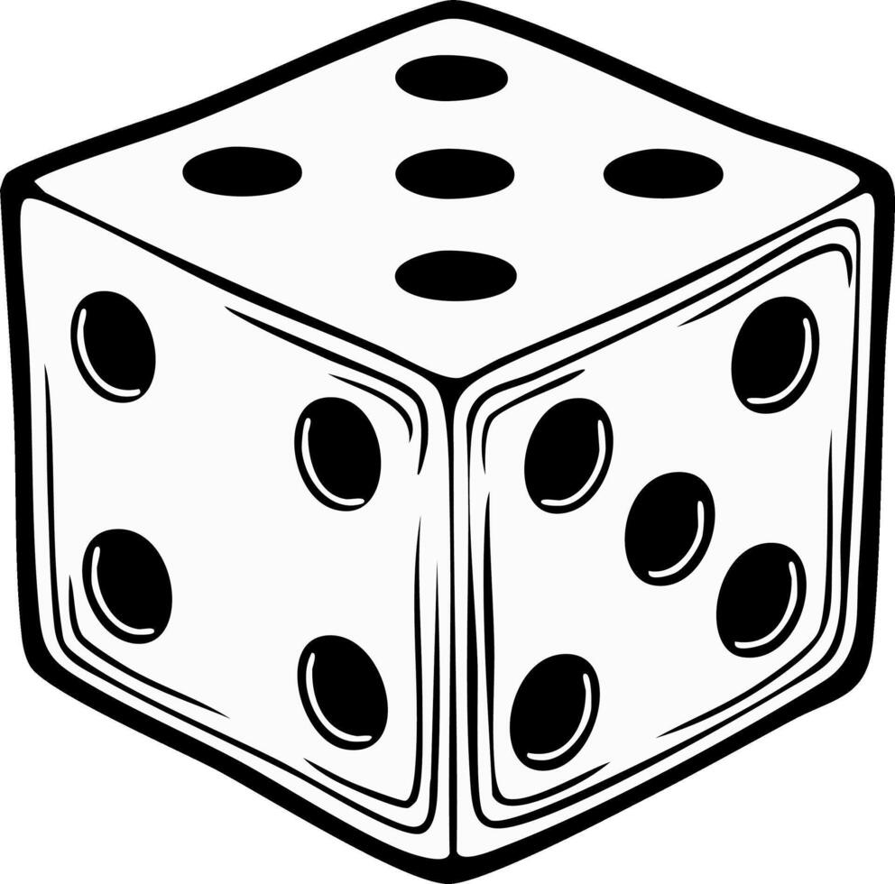 Single Dice Illustration with Spots Representing Numbers in Black and White Simple Cube Shape Luck Element Pro Vector