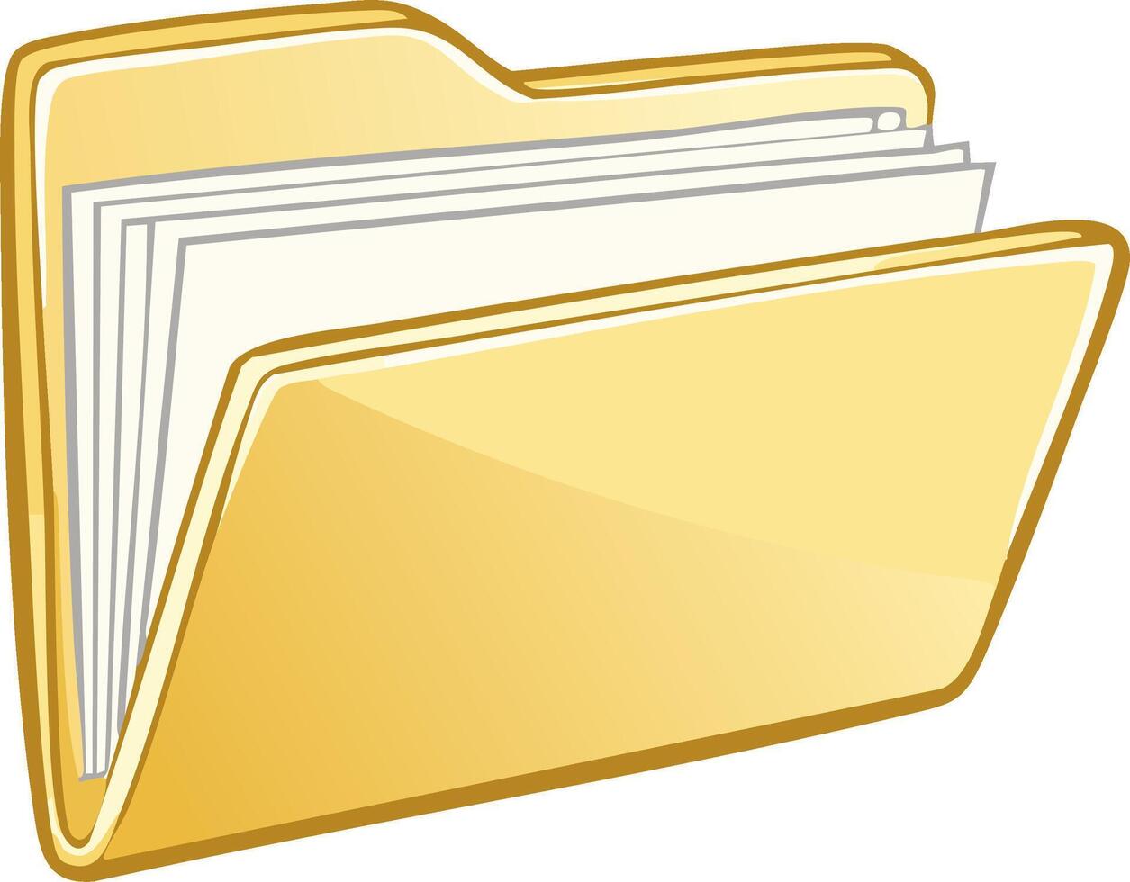 Open yellow file folder containing documents and papers, illustration Pro Vector