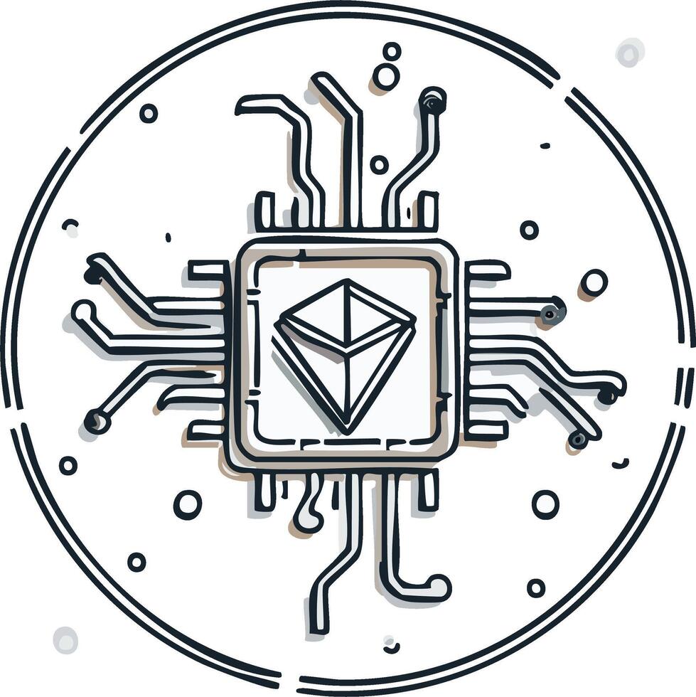 Stylized cryptocurrency chip icon representing digital blockchain technology Pro Vector