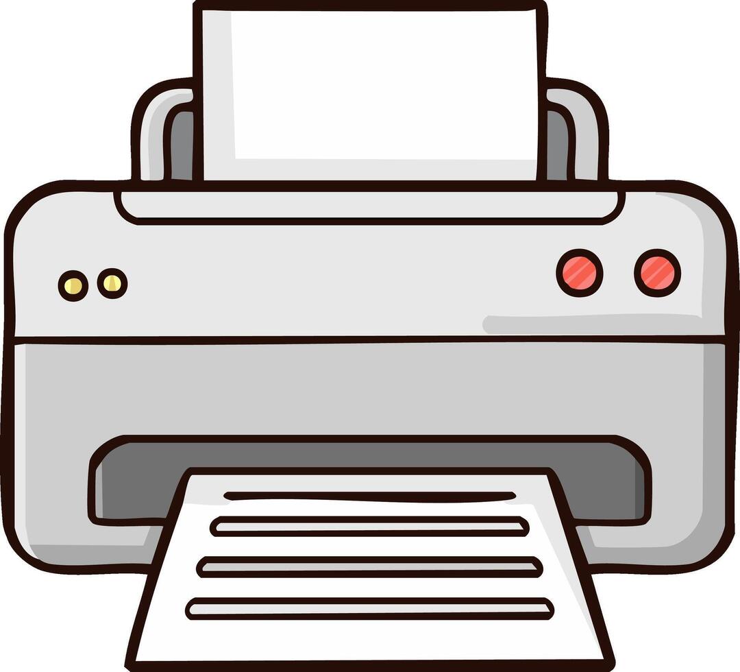 Cute Cartoon Style Office Printer Printing Documents with Paper Input and Output Illustration Pro Vector
