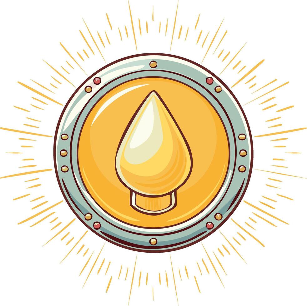 Golden Coin with Drop Shape Motif and Radial Burst Design Element Pro Vector