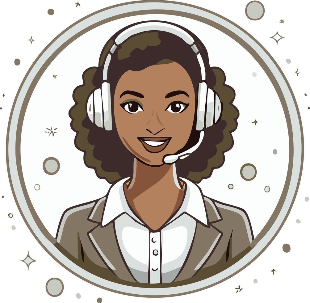 Smiling customer service representative with a headset, inside of a circle Pro Vector