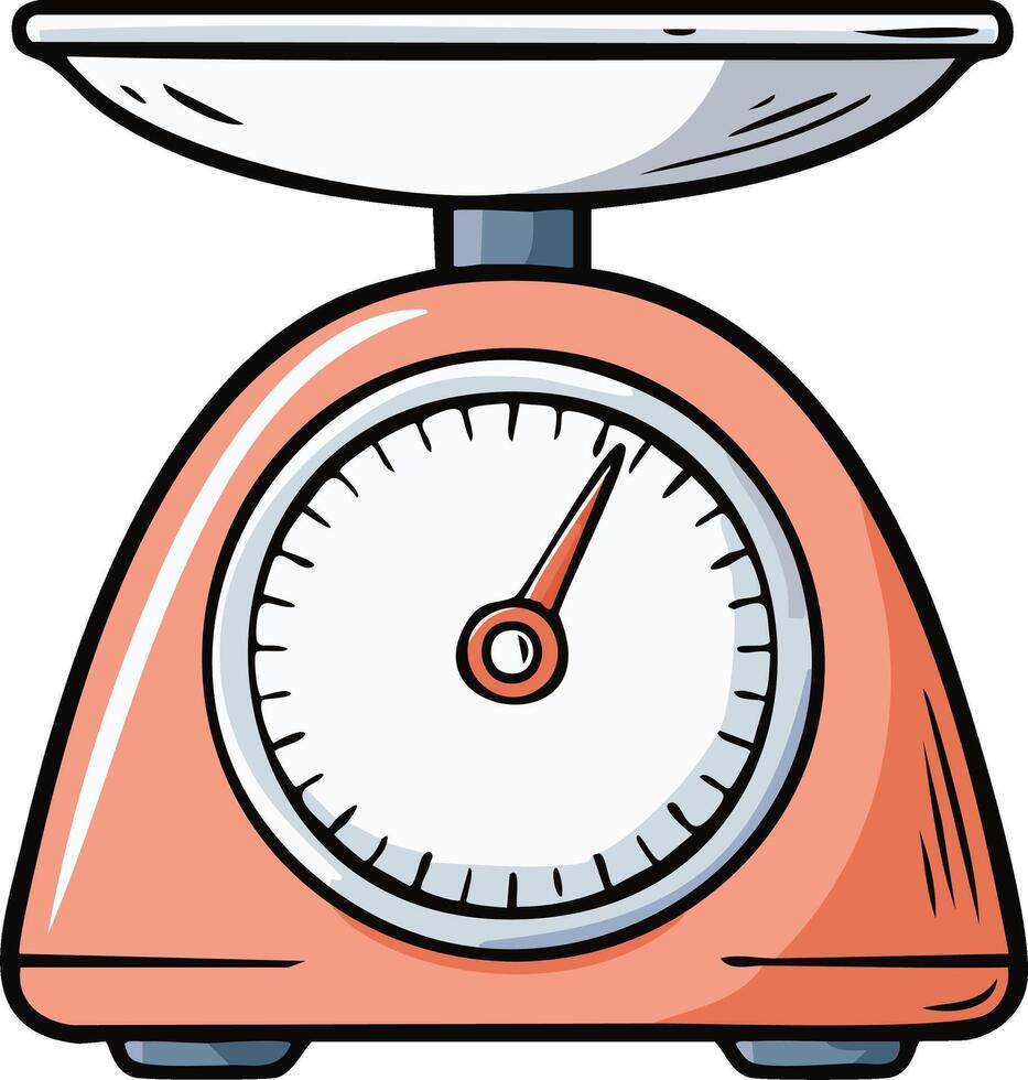 Retro Pink Kitchen Scale Weighing Ingredients with Analog Dial Display and Empty Weighing Pan Pro Vector