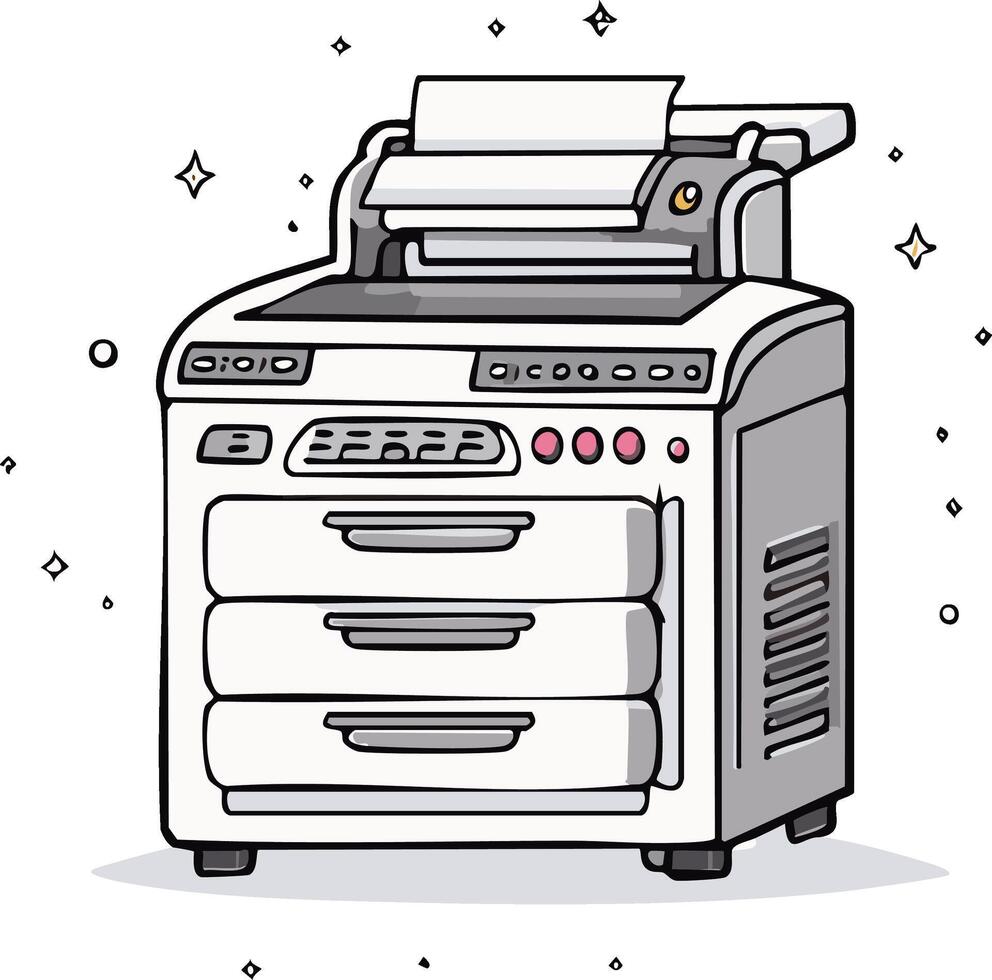 Cartoon Style Office Printer with Paper Output and Multiple Paper Trays Pro Vector