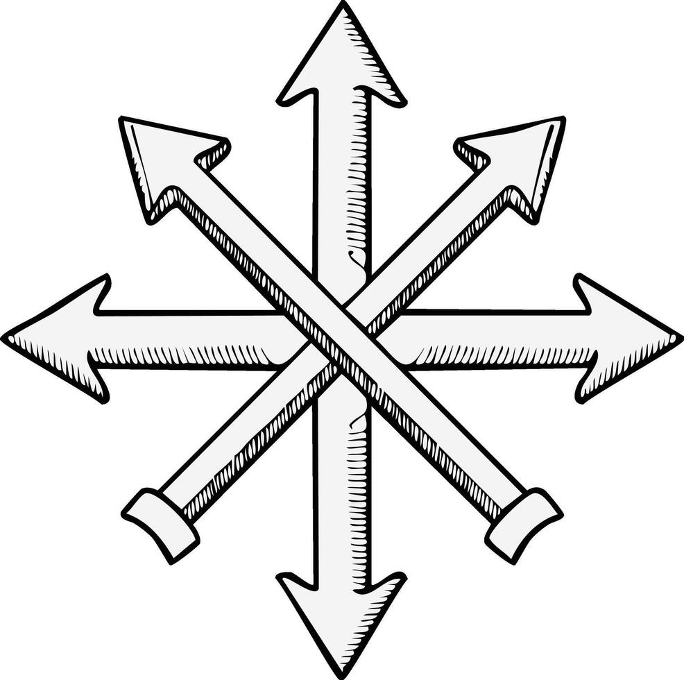 Six directional arrows intersecting in a starburst pattern sketched outline style Pro Vector