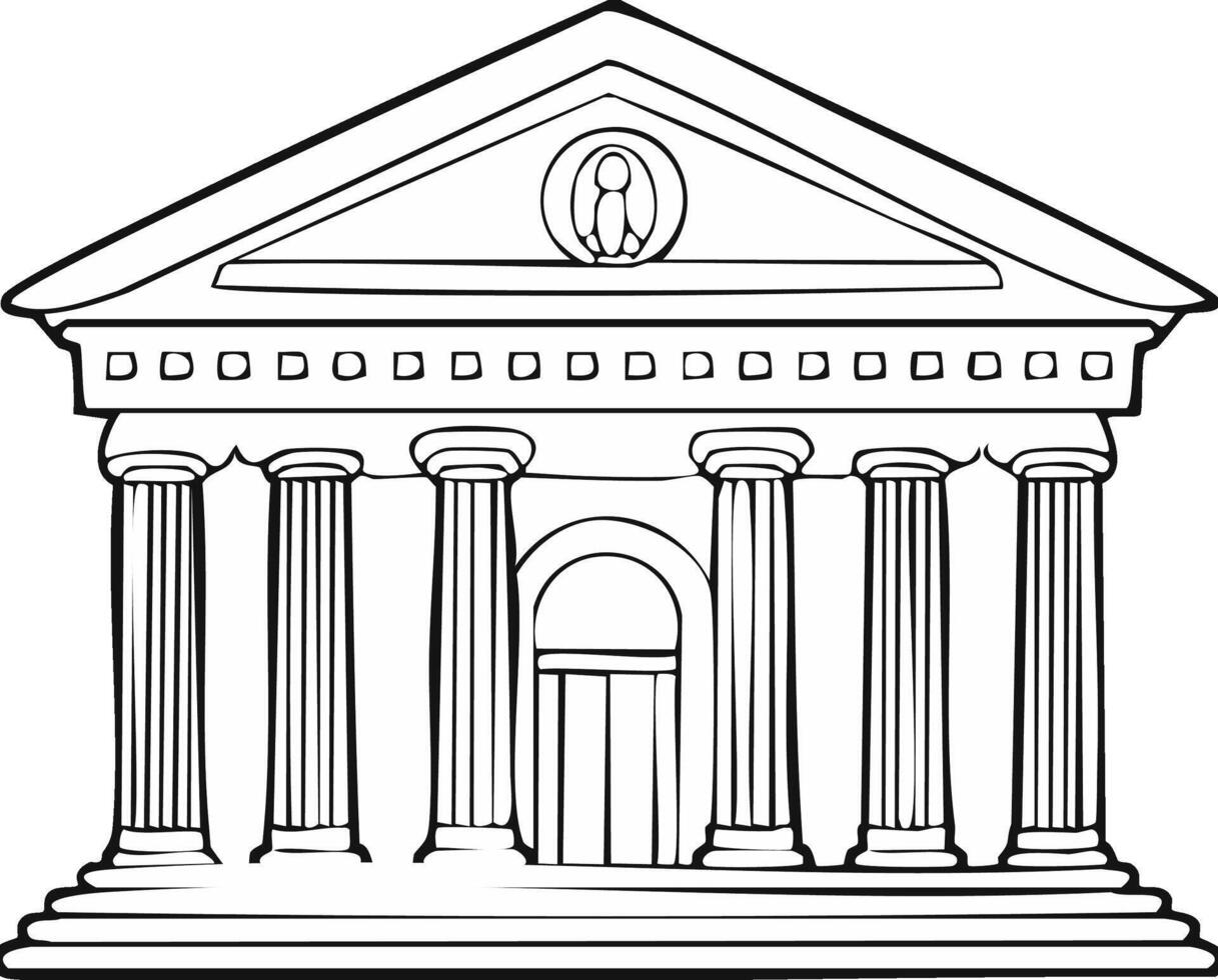 Monochrome classical style building with columns pediment and central arched door Pro Vector