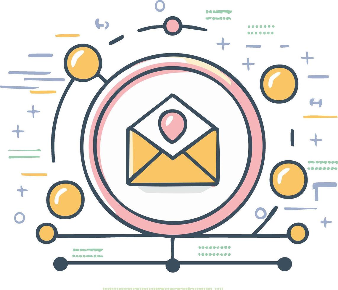 Email Concept Illustration with Envelope and Circles in Sketch Style Pro Vector