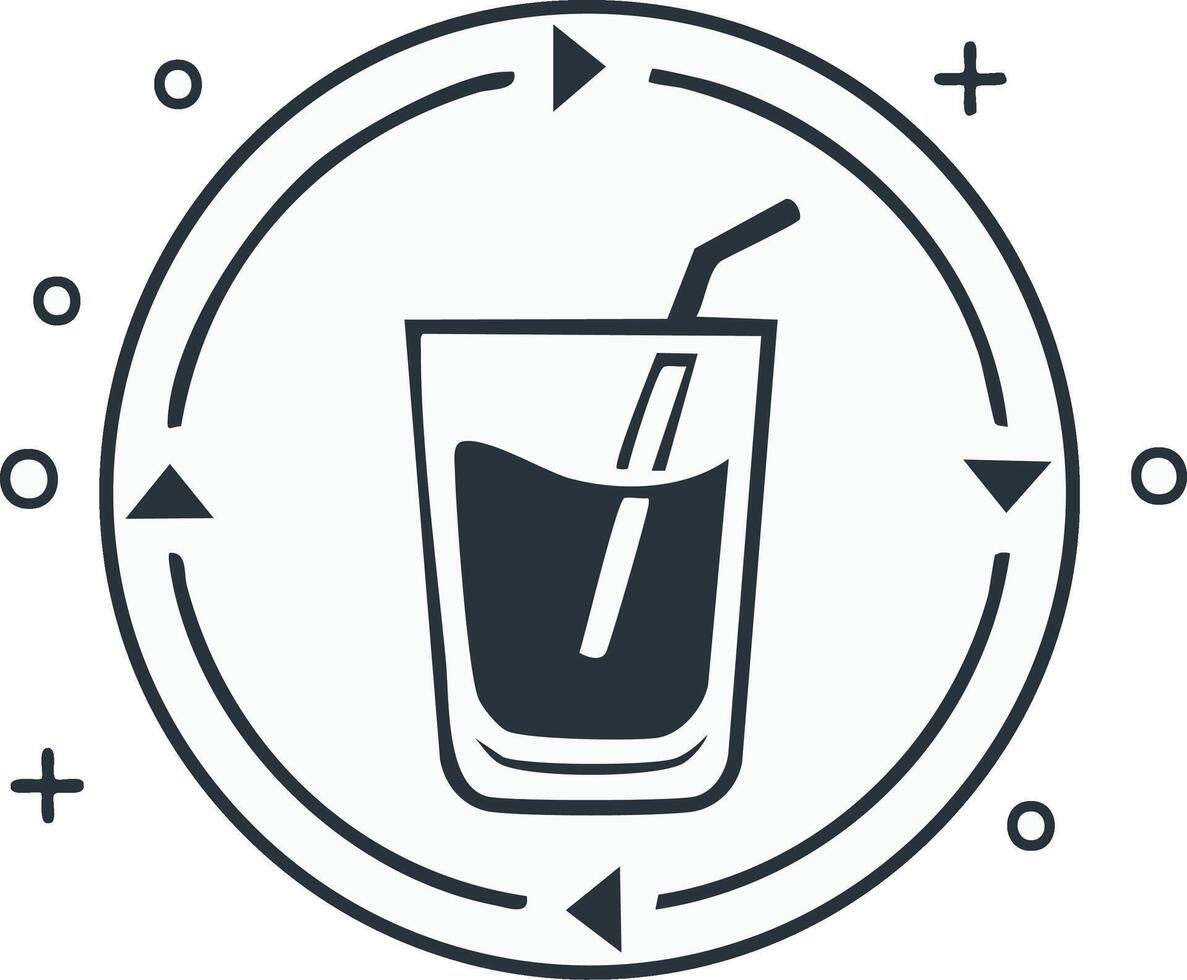 Glass of juice with straw inside rotating circular linear element Pro Vector