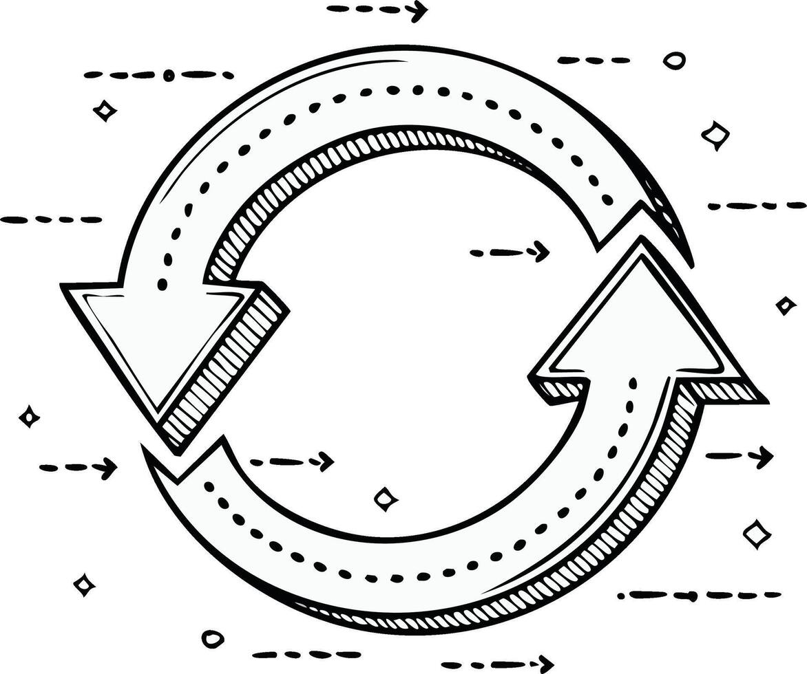 Hand Drawn Illustration of Circular Arrow Loop with Arrows in Doodle Style Pro Vector