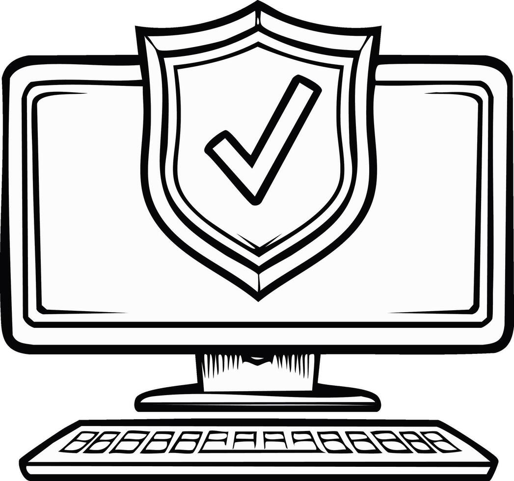 Illustration of computer with security shield and checkmark for secure online data and antivirus protection concept Pro Vector