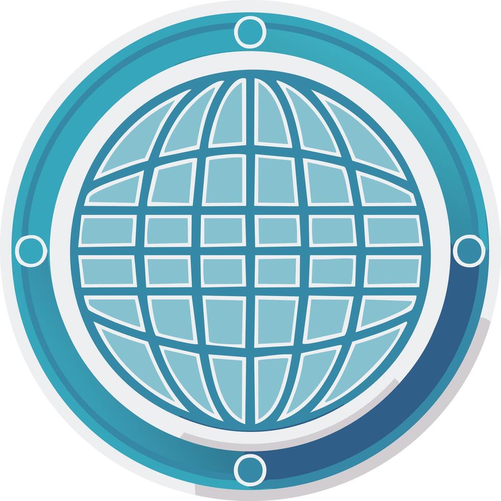 Detailed world globe icon on modern teal background with circles for navigation network and international relations Pro Vector