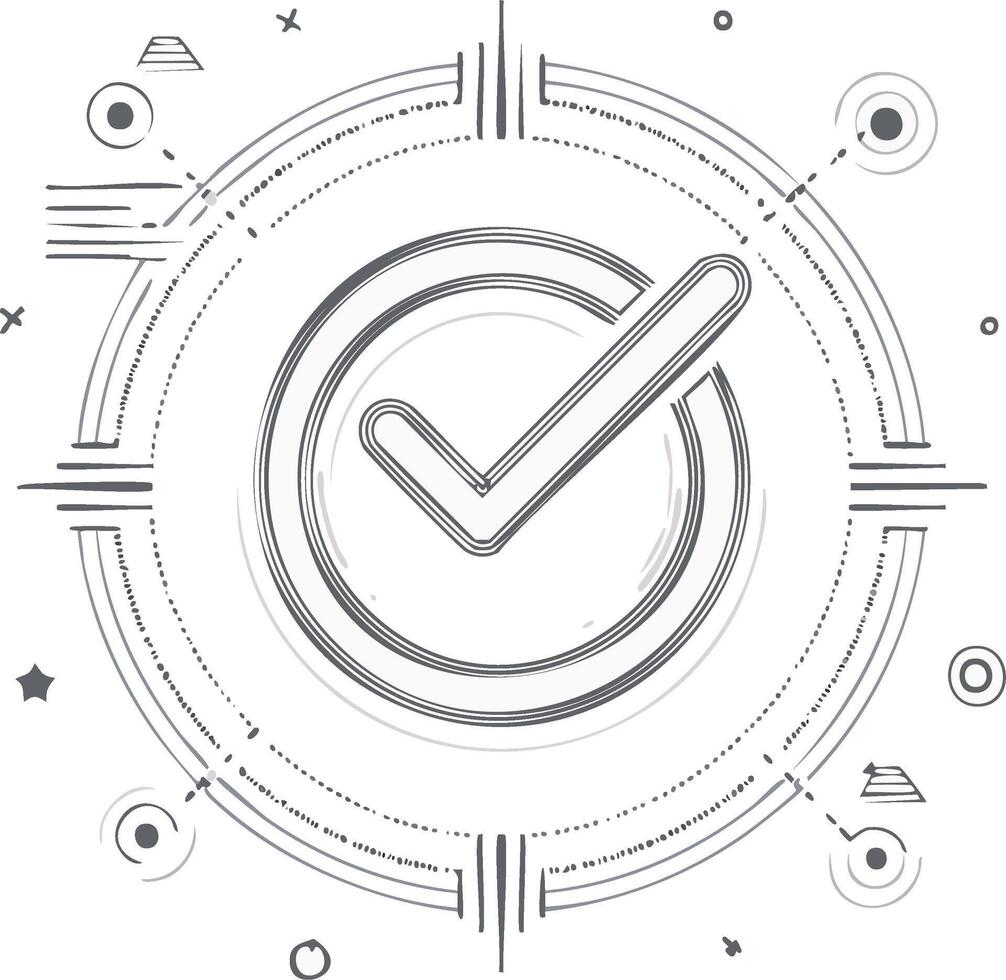 Sketch style checkmark icon inside a technical circle for approval and success Pro Vector