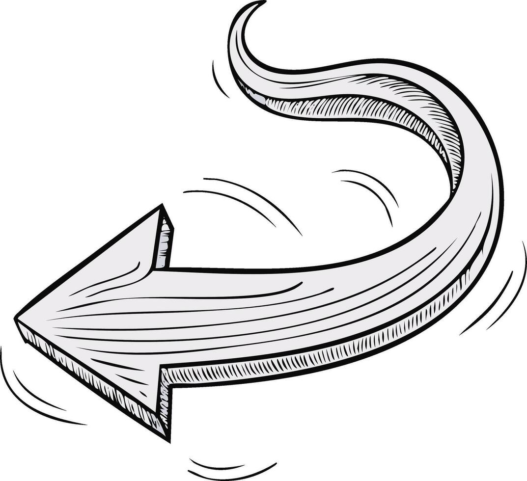 Hand drawn curved arrow pointing left in a dynamic sketch style illustration Pro Vector