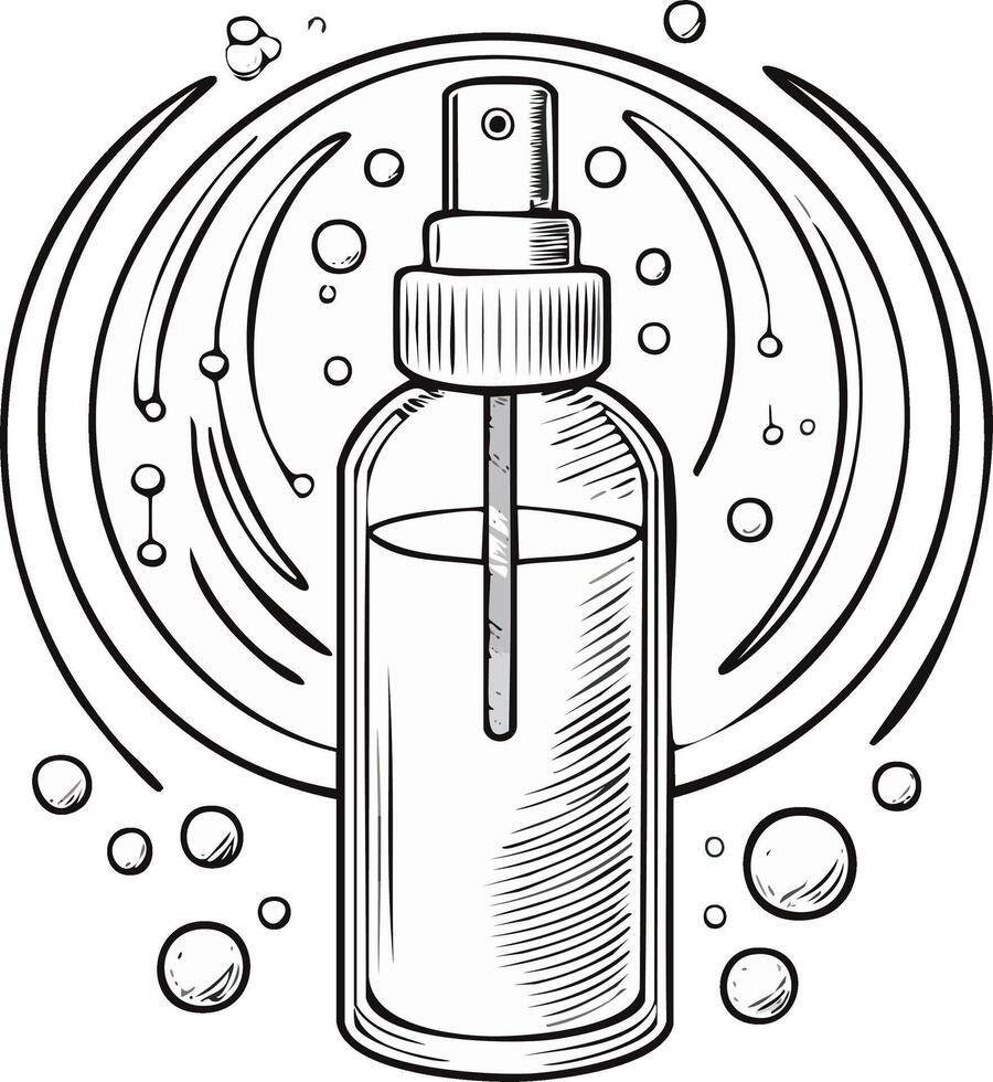 Hand drawn outline of a generic spray bottle with liquid and a diffusing mist effect clean style Pro Vector