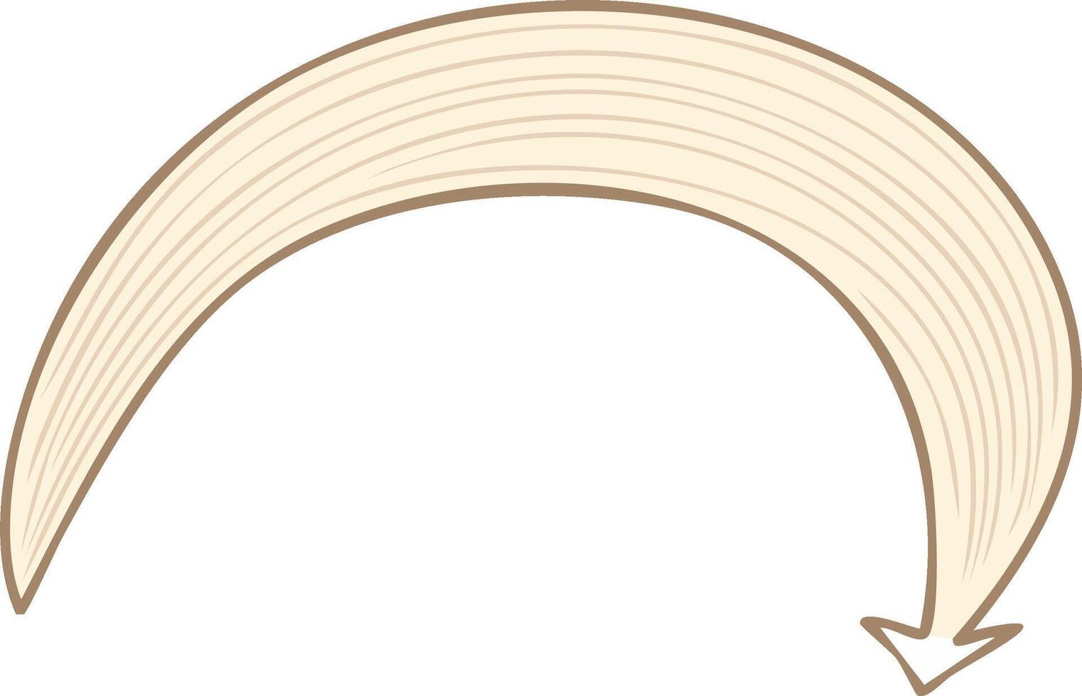 Tan curved arrow graphic with linear texture, point down, direction illustration with neutral earth tones, minimal design Pro Vector