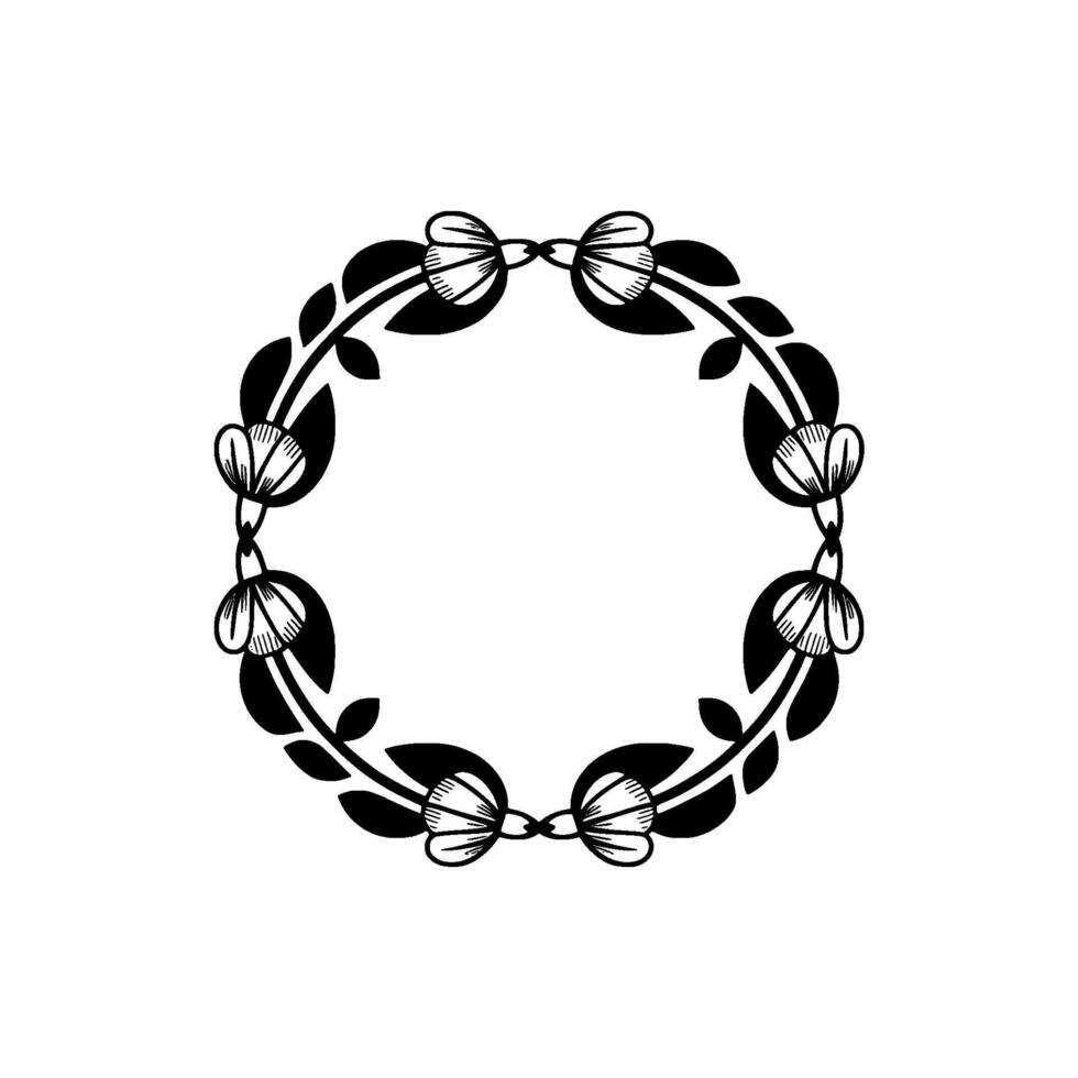 Elegant ink botanical wreath composed of stylized closed buds and abstract leaf shapes arranged in a circular frame vector