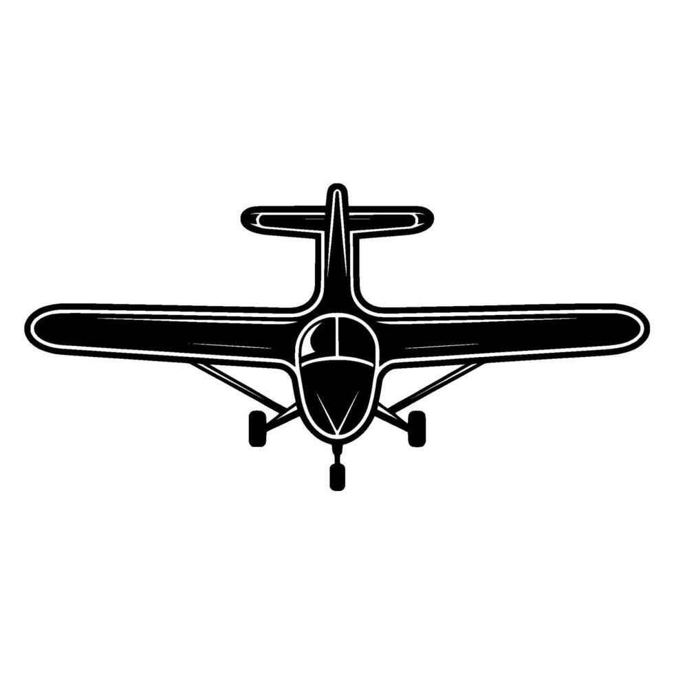 A clean illustration of a small single engine propeller airplane viewed from the front with its wings outstretched and landing gear deployed Pro Vector