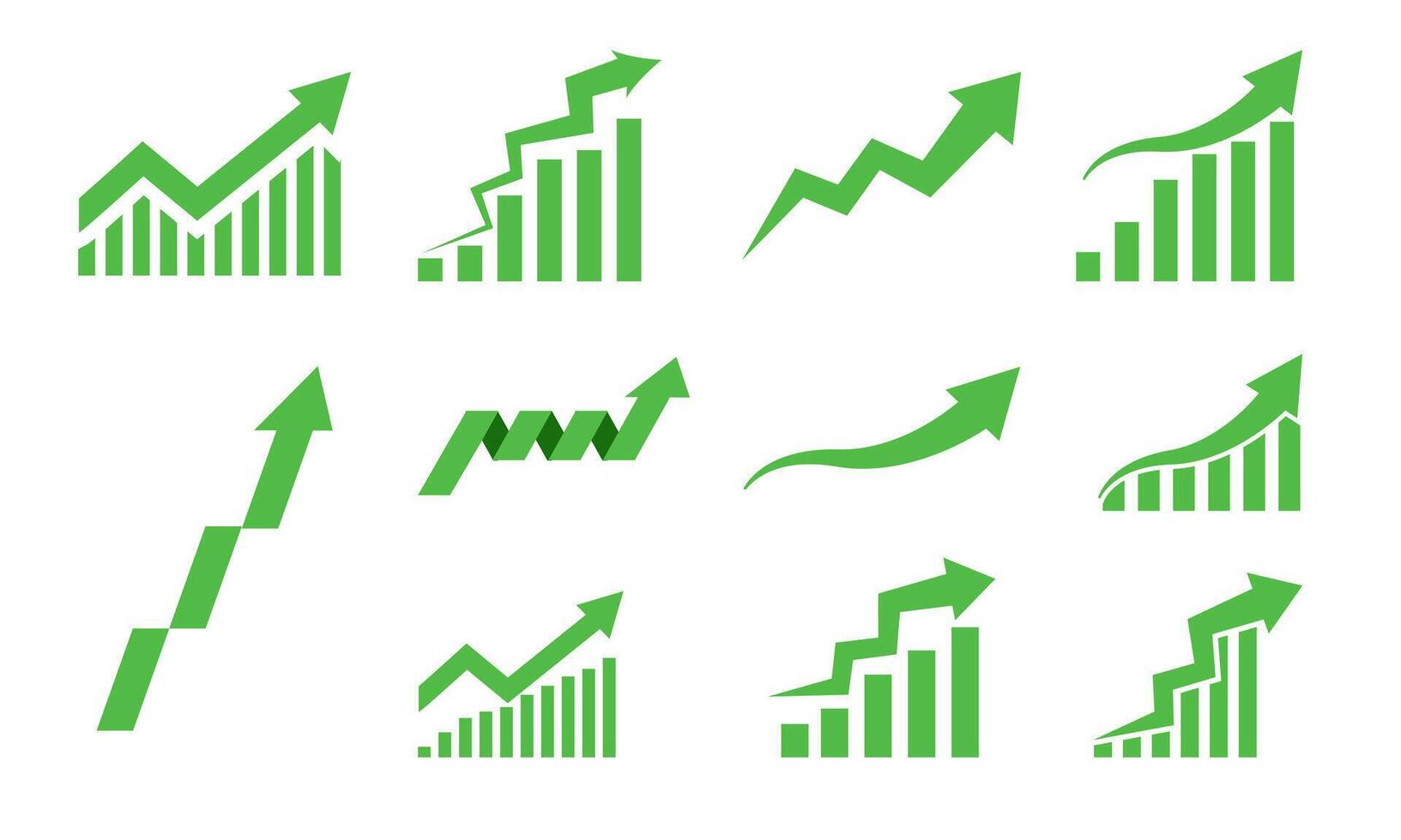 Graph going up sign arrows Bar chart symbol arrow moving up. Statistic report Pro Vector