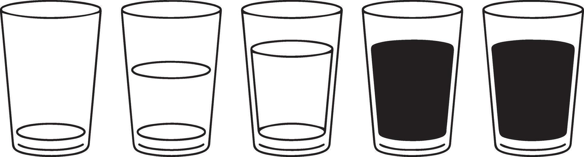 Five Glasses Showing Different Levels of Liquid From Empty to Full half full Pro Vector