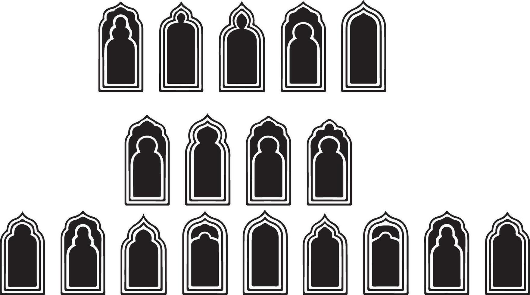 Islamic arch window frame collection in various styles for mosque architecture Pro Vector