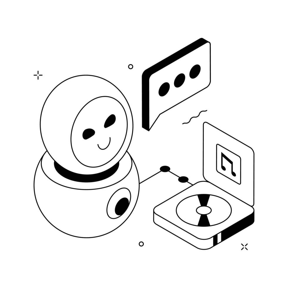 Creatively designed Isometric AI media assistant managing smart digital content. Pro Vector