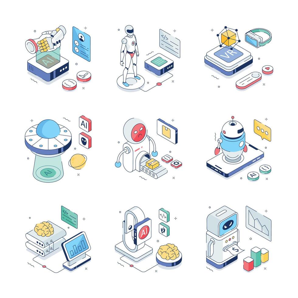 Exploring AI and Robotics Through Creative Illustrations Pro Vector