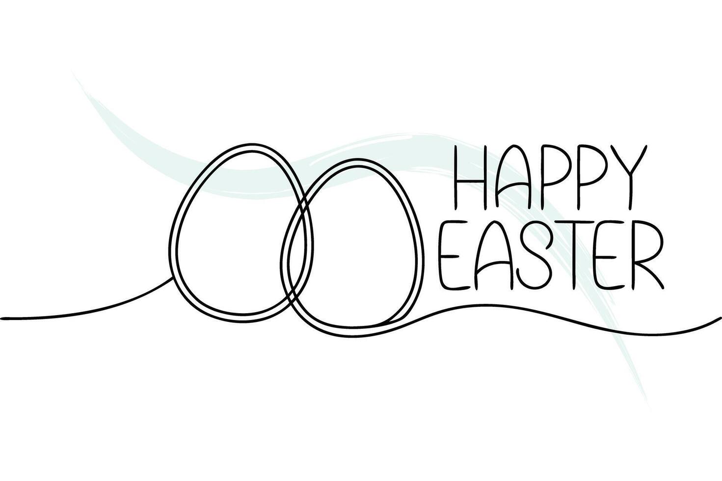 Two Continuous Line Art Easter Eggs with Happy Easter Text Brush Stroke vector