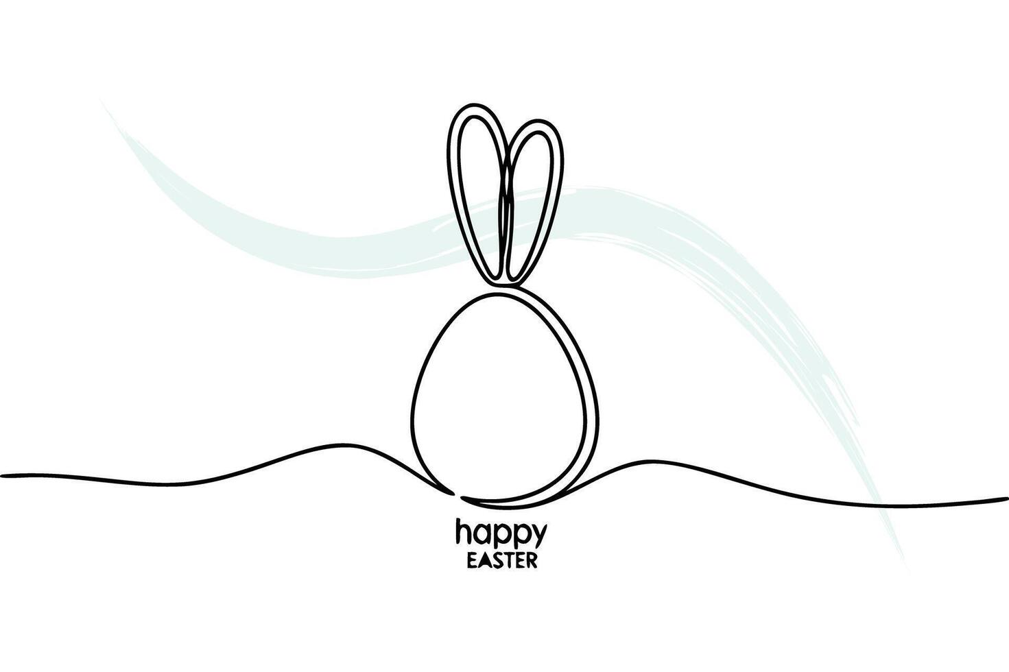 Continuous Line Drawing Easter Egg with Rabbit Ears Happy Easter Text bunny vector