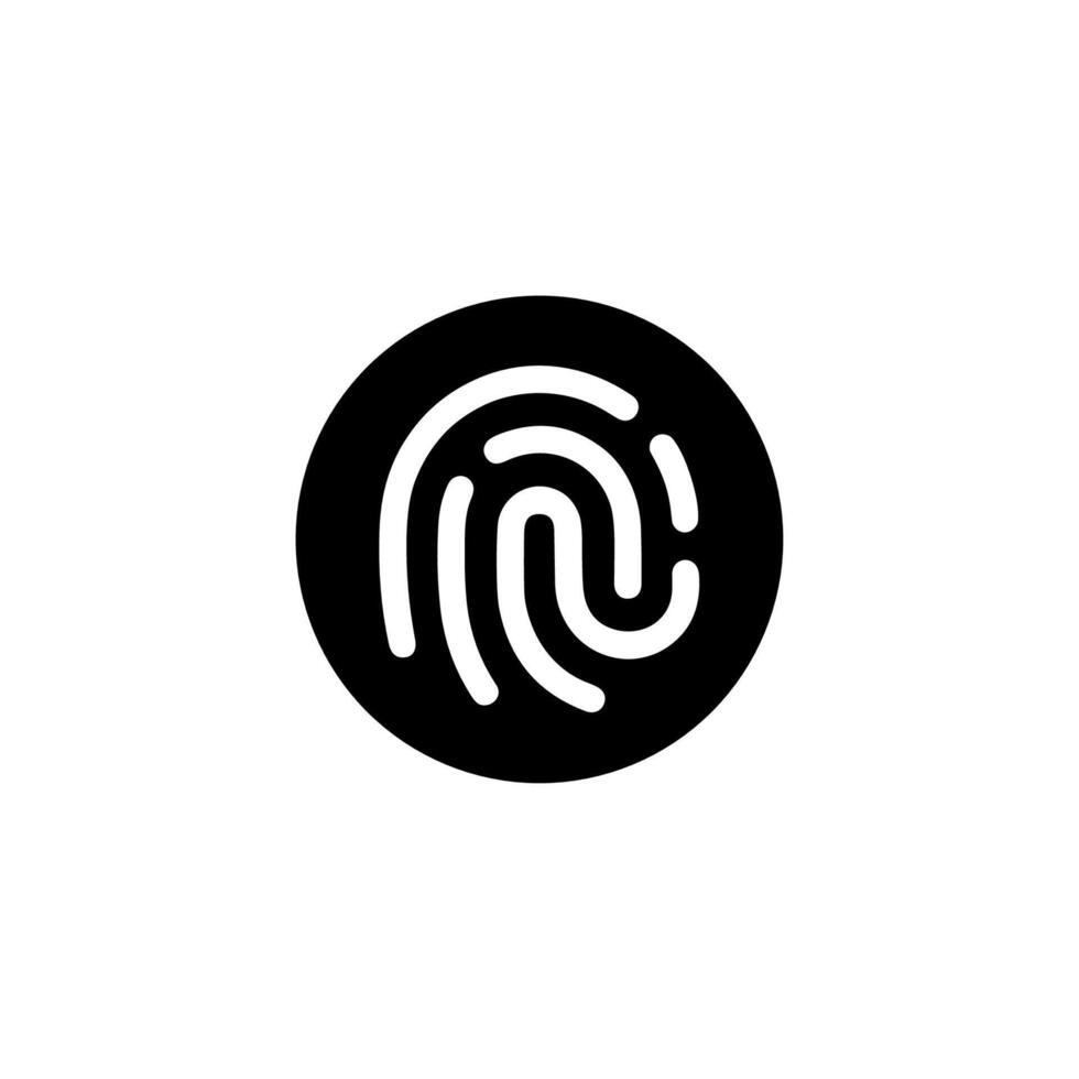 Minimalist Black and White Fingerprint Scan Authentication Security Round Icon Pro Vector