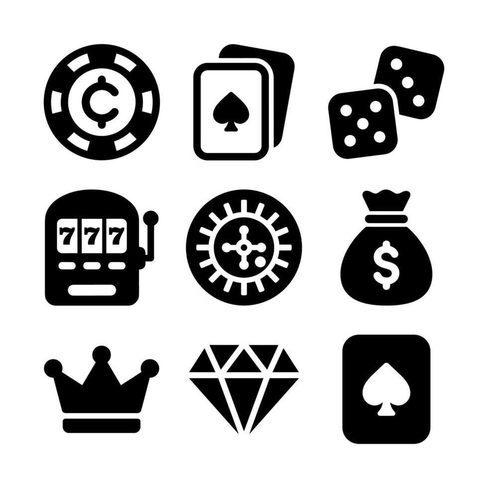 Bold Simple Gambling Element Icon Set with Chip Dice and Card Pro Vector