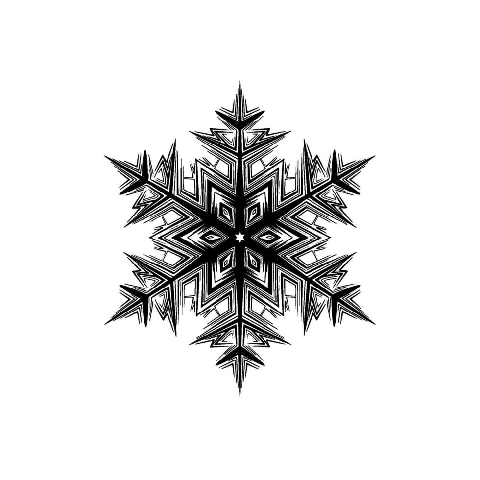 Intricate abstract ink style six pointed snowflake with sharp angular geometric arms and a central star motif Pro Vector