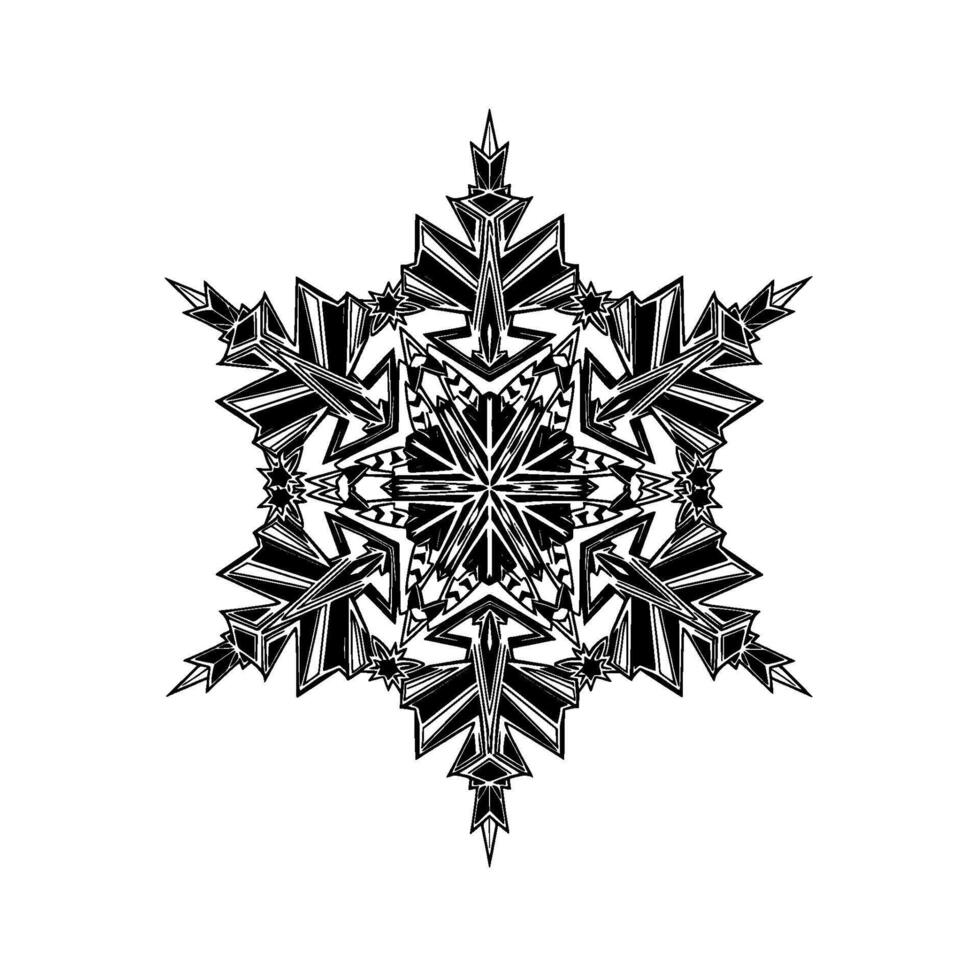 Intricate geometric symmetrical snowflake illustration with sharp angular crystalline formations Pro Vector
