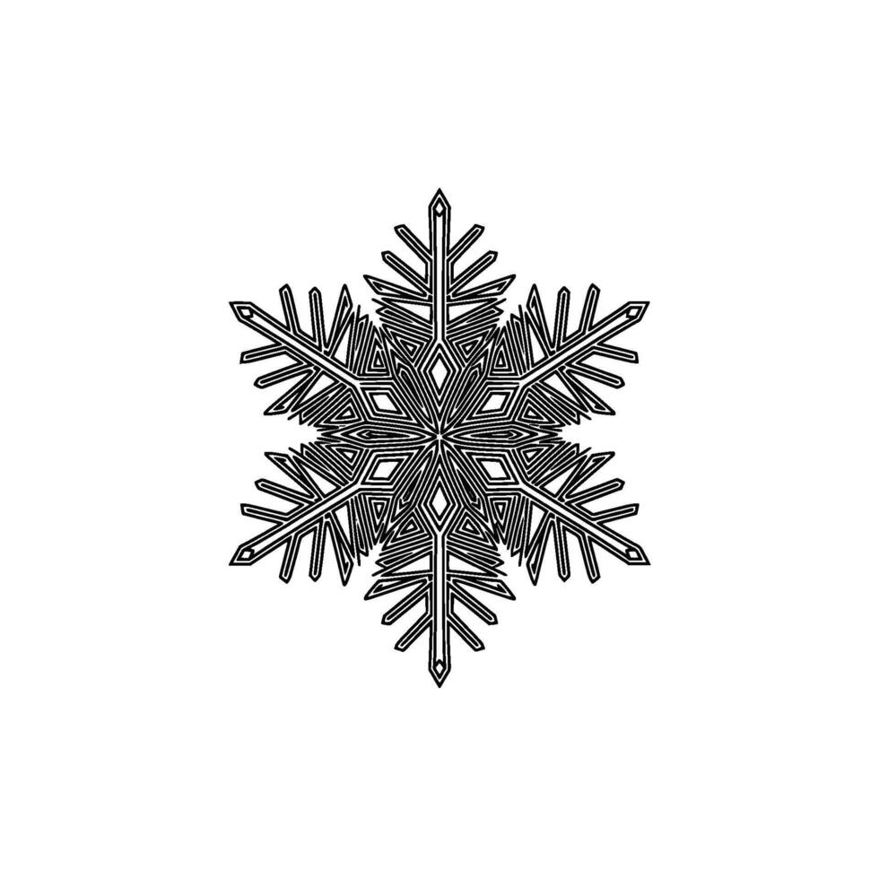 A highly detailed geometric outline of a symmetrical snowflake with intricate crystalline fractal patterns Pro Vector