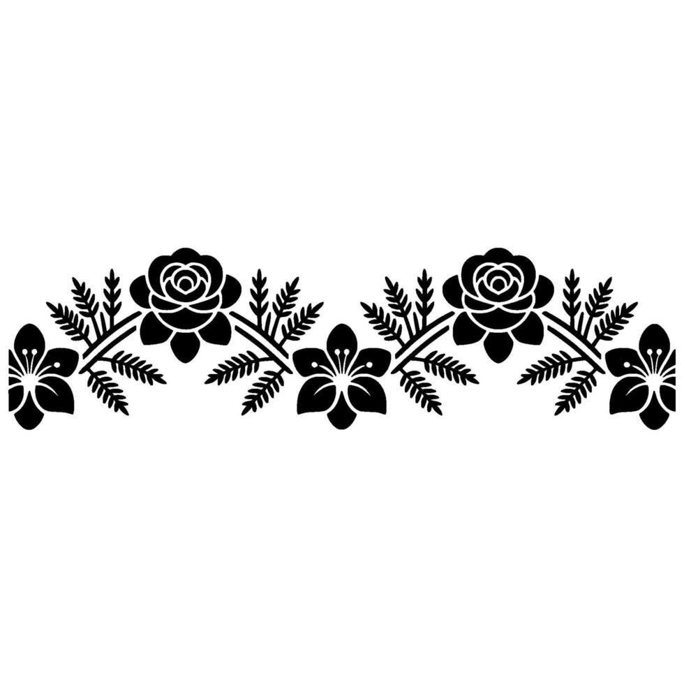 A sophisticated border featuring a repeating pattern of stylized roses and simple fivepetal flowers interspersed with fernlike foliage elements Pro Vector
