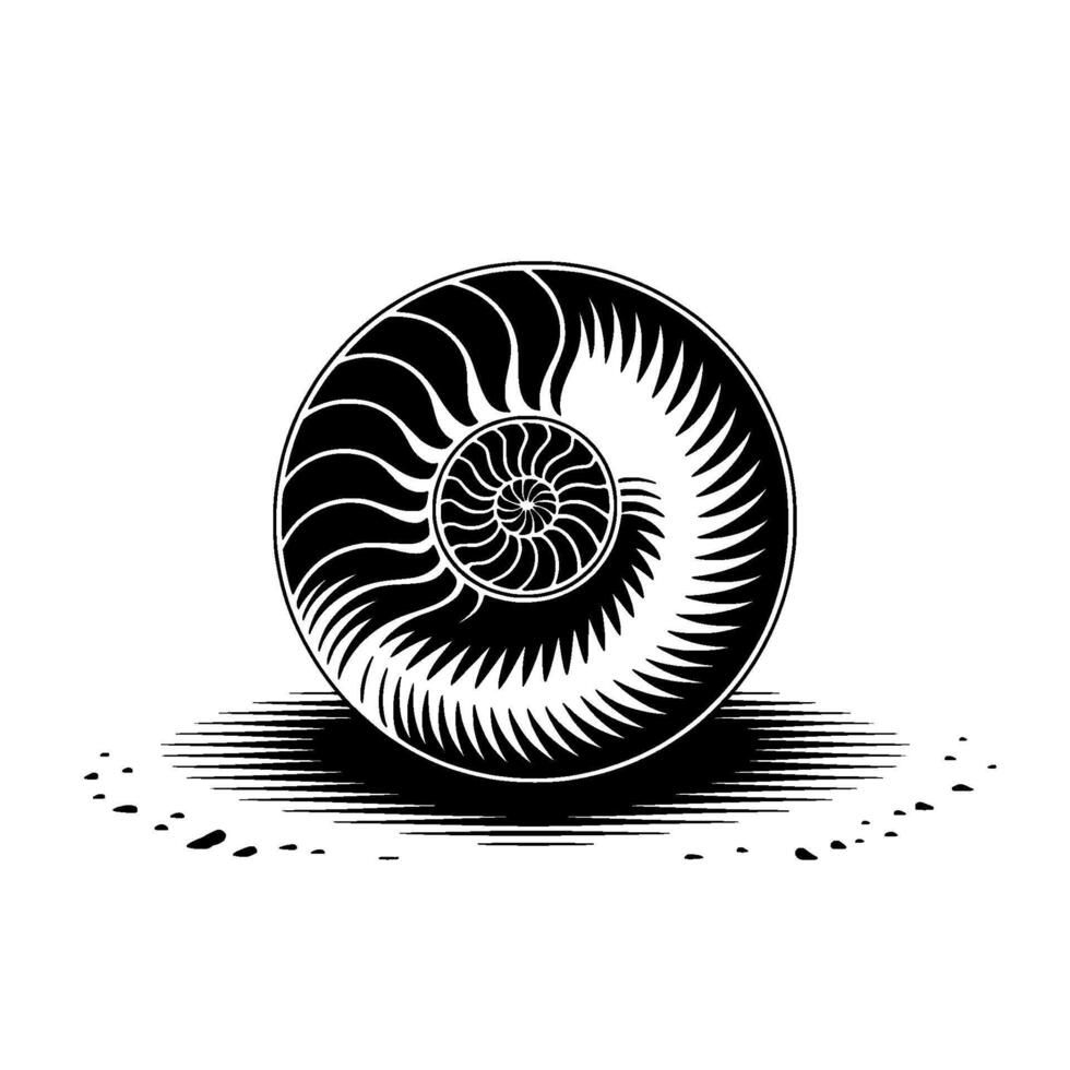 Intricate linework illustration of a nautilus shell cross section showcasing its perfect logarithmic spiral and chambers Pro Vector