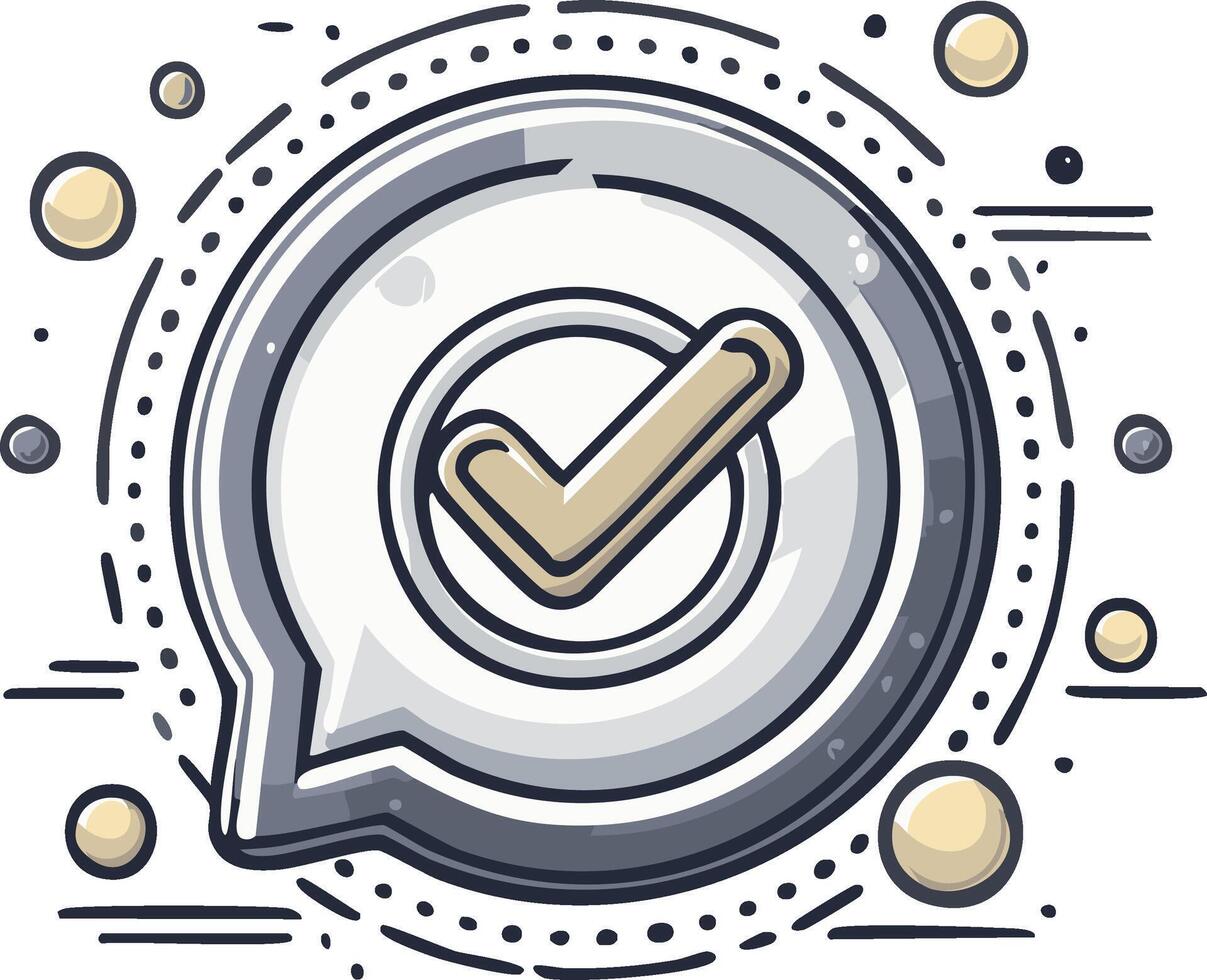 Hand drawn check mark icon in a speech bubble for confirmation and approval Pro Vector