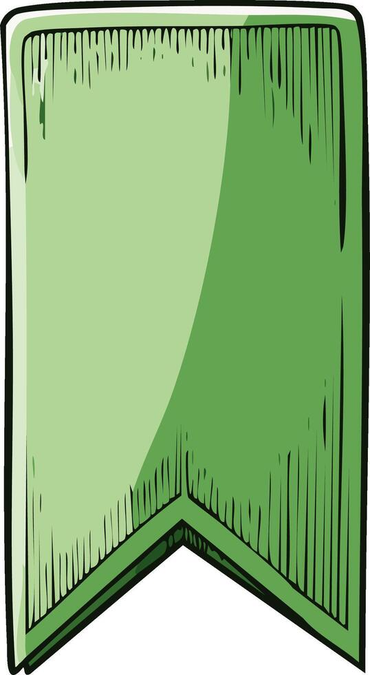 Green banner flag marker with sketched texture and shadow for design element Pro Vector