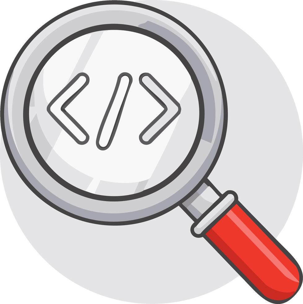 Magnifying glass over a source code symbol for development and debugging Pro Vector