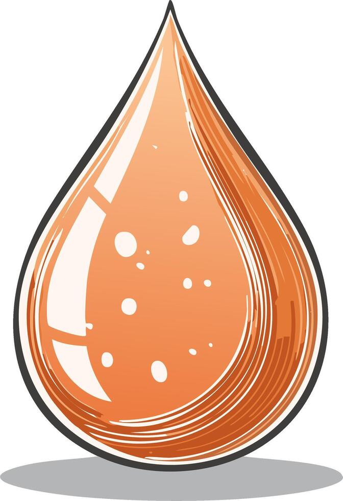Orange liquid drop illustration, isolated design element in retro style with a shadow Pro Vector