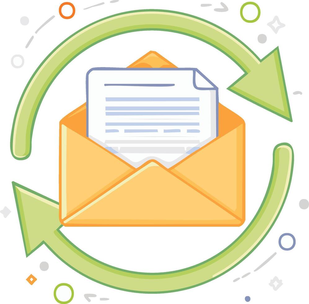 Email Cycle with Envelope, Message and Arrows Conveying Exchange and Communication Pro Vector