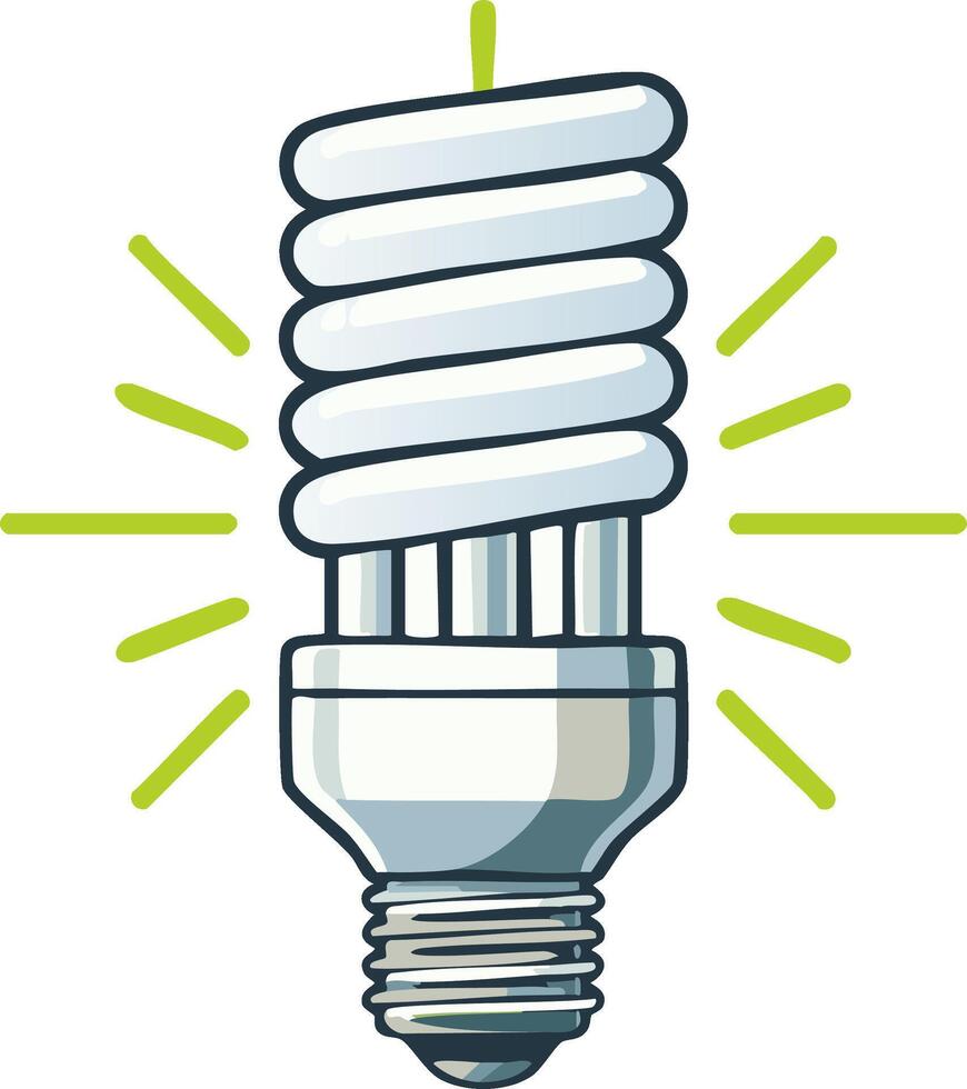 Stylized Illustration of Energy Efficient Lightbulb with Rays Emanating from It Symbolizing Power and Energy Conservation Concept Pro Vector