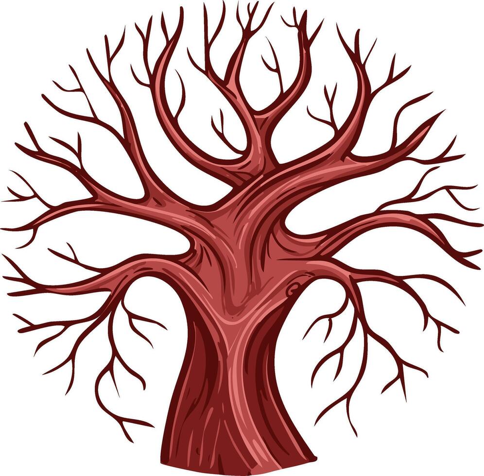 Stylized Illustration of a Bare Tree with Branches in a Circular Composition Pro Vector