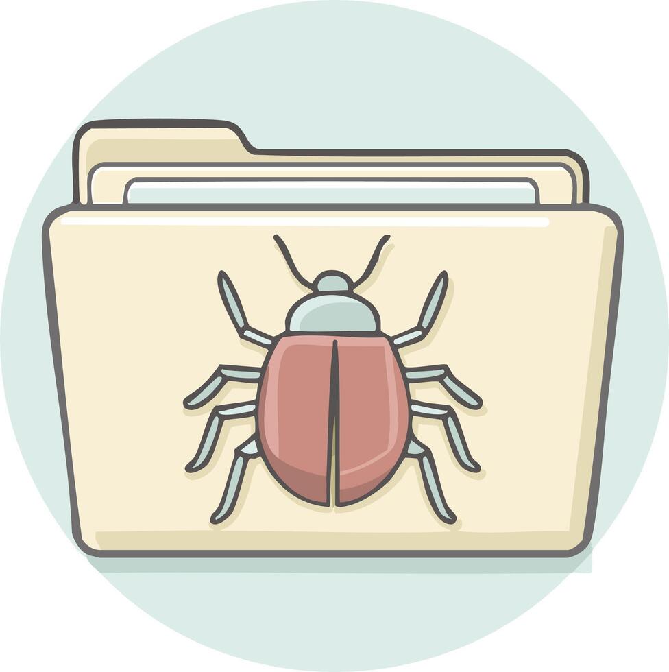 Computer Virus Concept, Bug on a Folder, Software Malware Threat, Outline Illustration Pro Vector